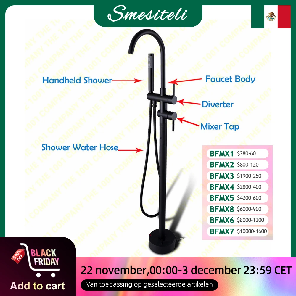 Freestanding Bathtub Faucet Bathroom Tub Shower Diverter Floor Mounted Mixer Tap Brass Rose Gold for Bath Spout With Handshower