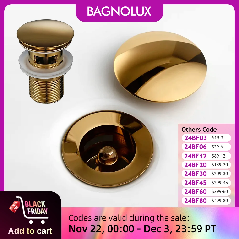 Bagnolux Polished Gold Basin Sink Drainer Corrosion Resistant Easy To Clean Pop Up Button Round Hole Bathroom Hotel Drainer
