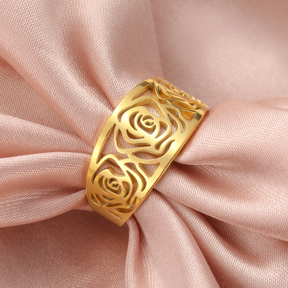 Cazador Rose Flower Rings for Women Stainless Steel 2024 Trend Jewelry Finger Ring Wedding Anniversary Birthday Gifts Wholesale