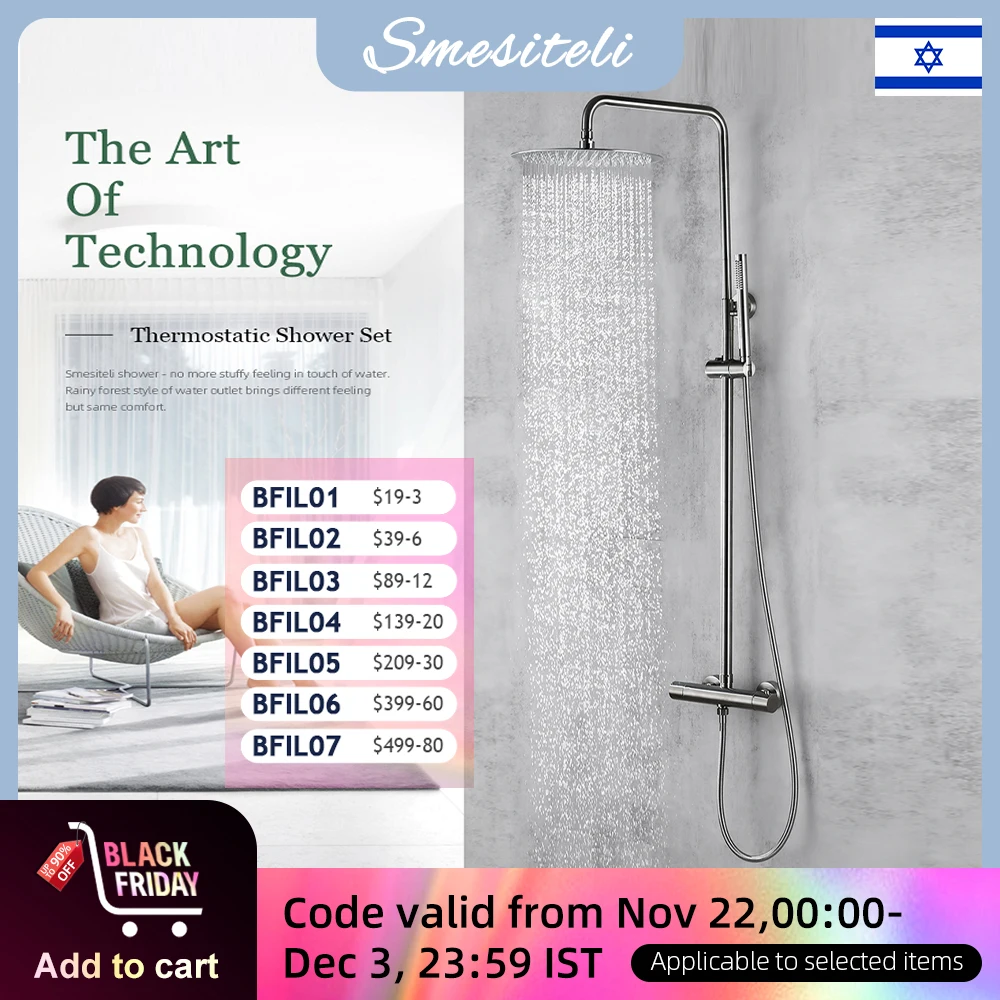 Brushed Nickel Thermostatic Shower Faucets Sets Wall Mount Brass Bathroom Mixer Rainshower Faucet Rainfall Shower Systems Thermo