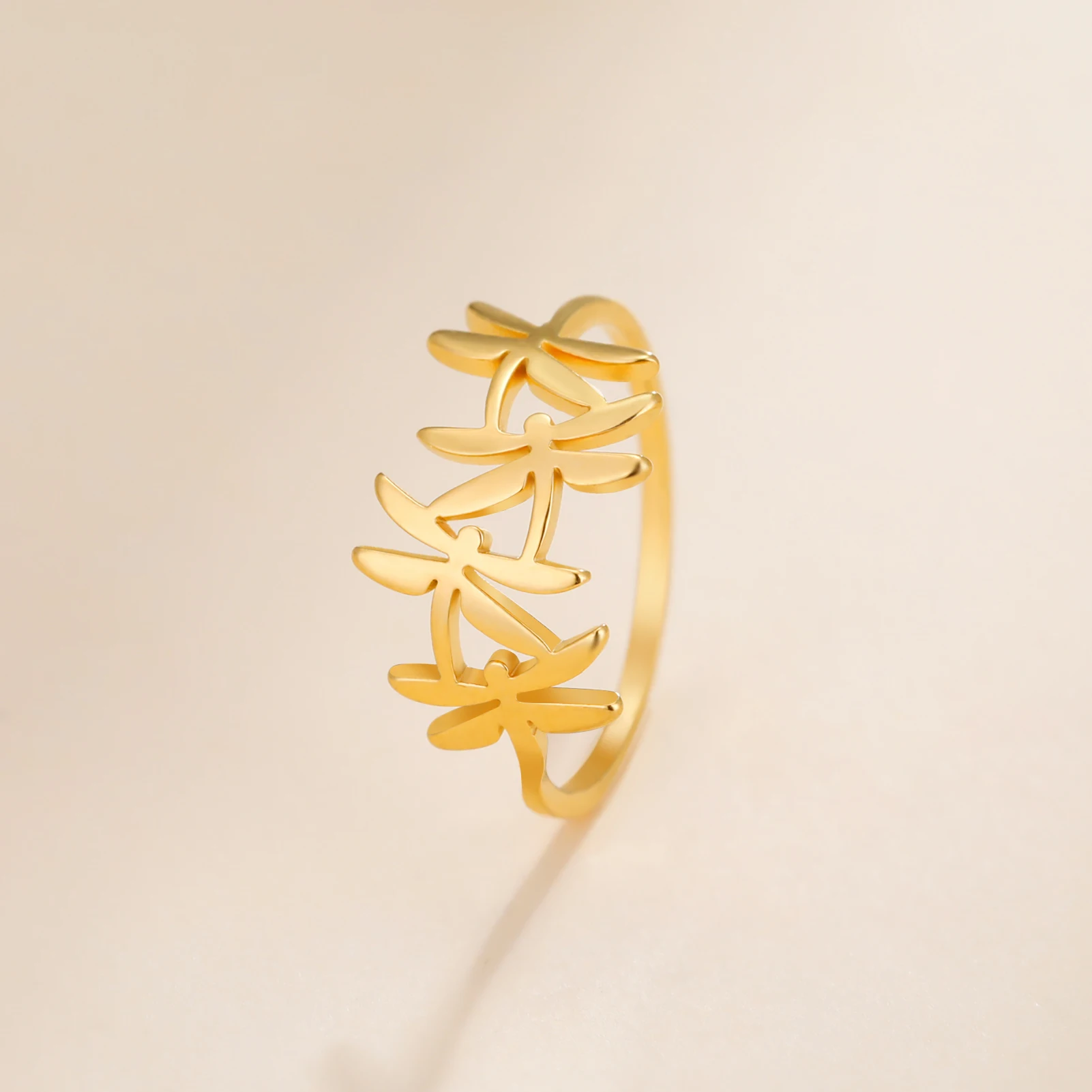 Cazador Stainless Steel Dragonfly Rings for Women Gold Color Finger Rings Jewelry Party Birthday Gift Wholesale 2024 Trend New