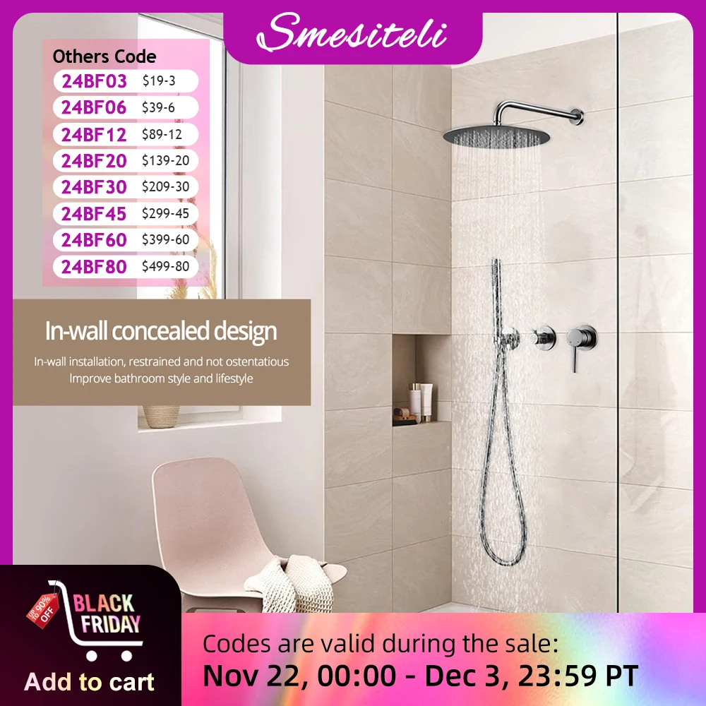 Gunmetal Shower Faucet 8-16'' Embed Box Wall Mounted ShowerHead Hot &Cold Shower Tap Handheld 2 Ways Ceiling Arm Shower Set