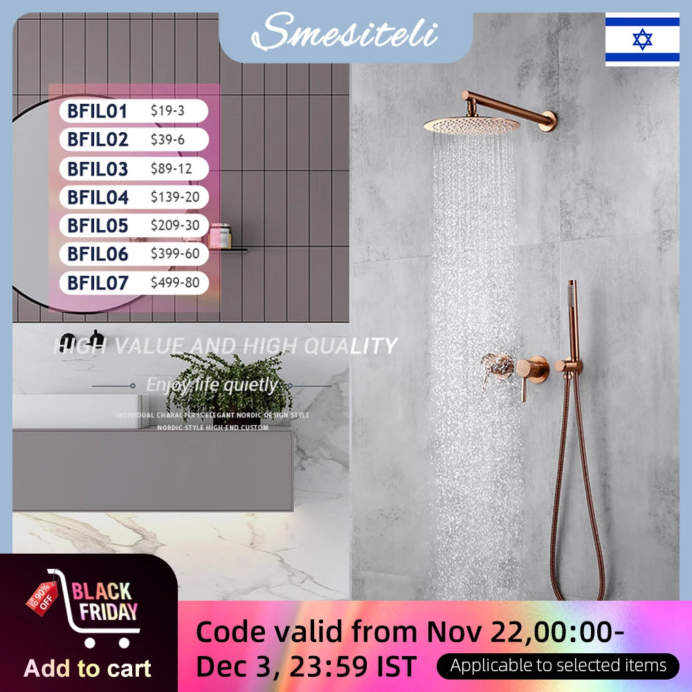 Rainfall Shower Set Rose Gold Wall Mounted Bathroom Shower Mixer Brass Faucet Hot Cold Water Mixer Tap With Head 8/10/12 Inch